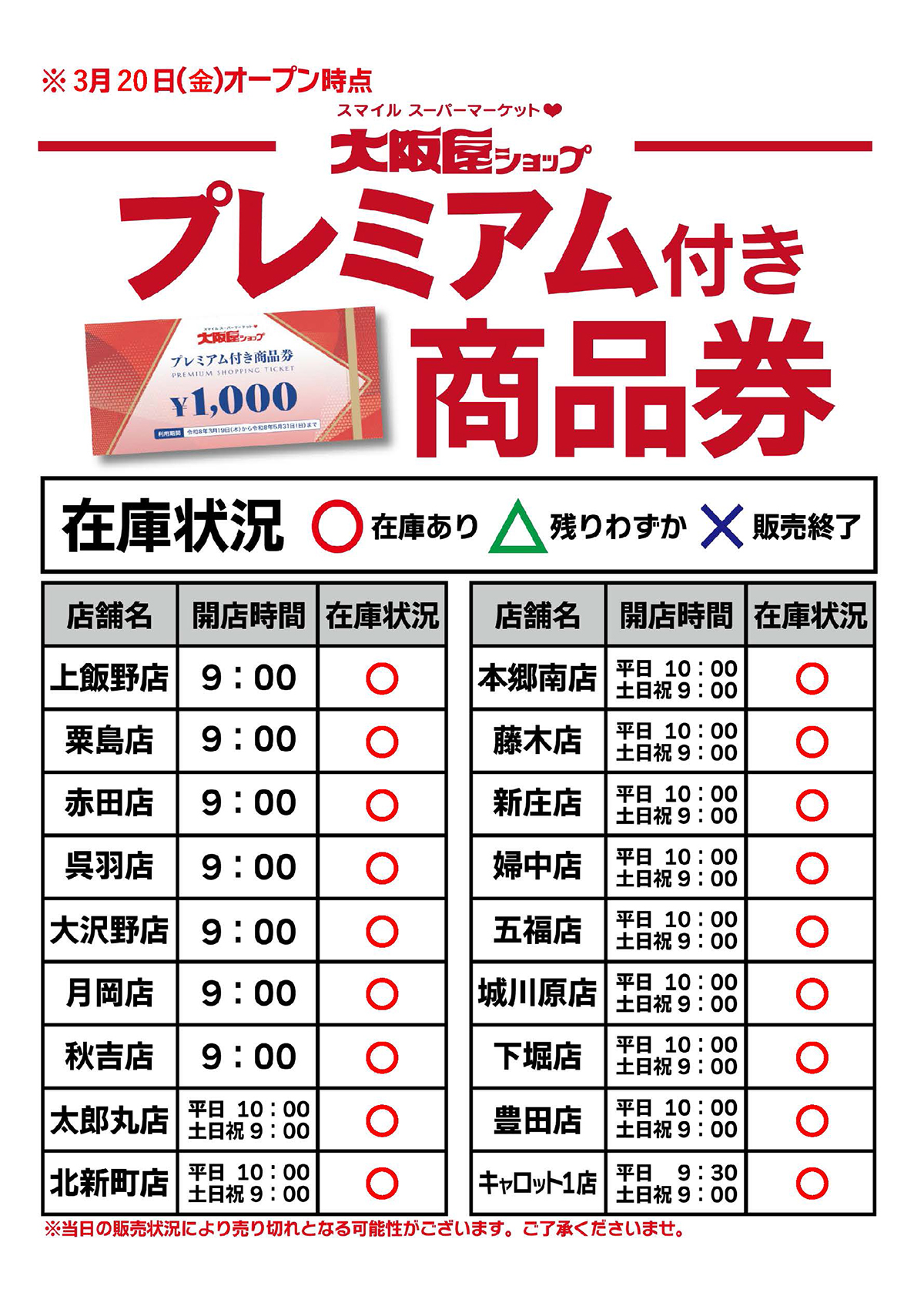 - 3/17(火)に配布済みの「お得なクーポン」ご利用ください