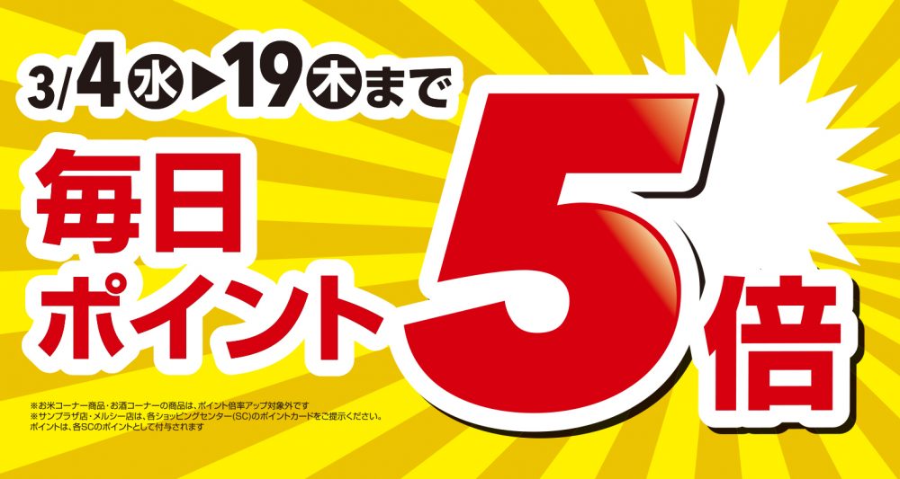 3/19(木)まで毎日ポイント5倍!