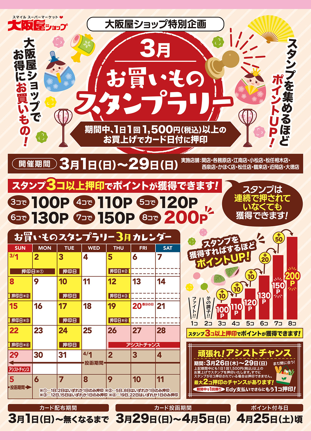 ※3コ以上スタンプが集まった場合は、スタンプラリーカードを投函期間内に店内投函箱にご投函ください