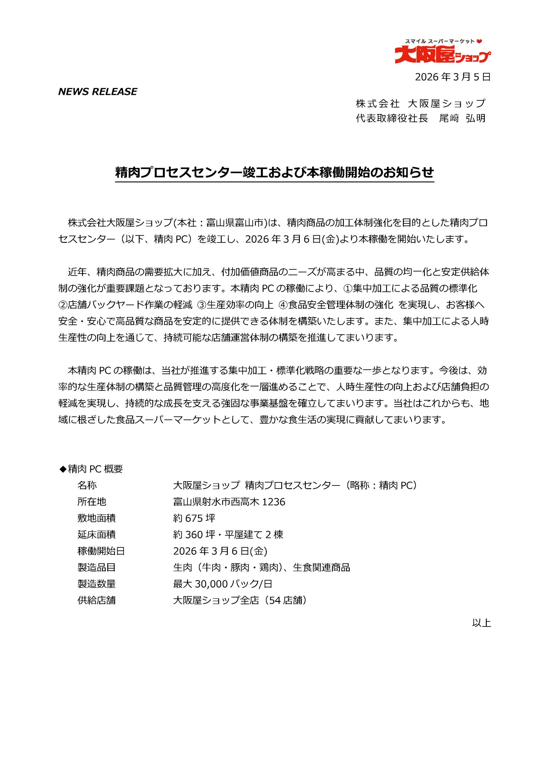 精肉プロセスセンター竣工および本稼働開始のお知らせ