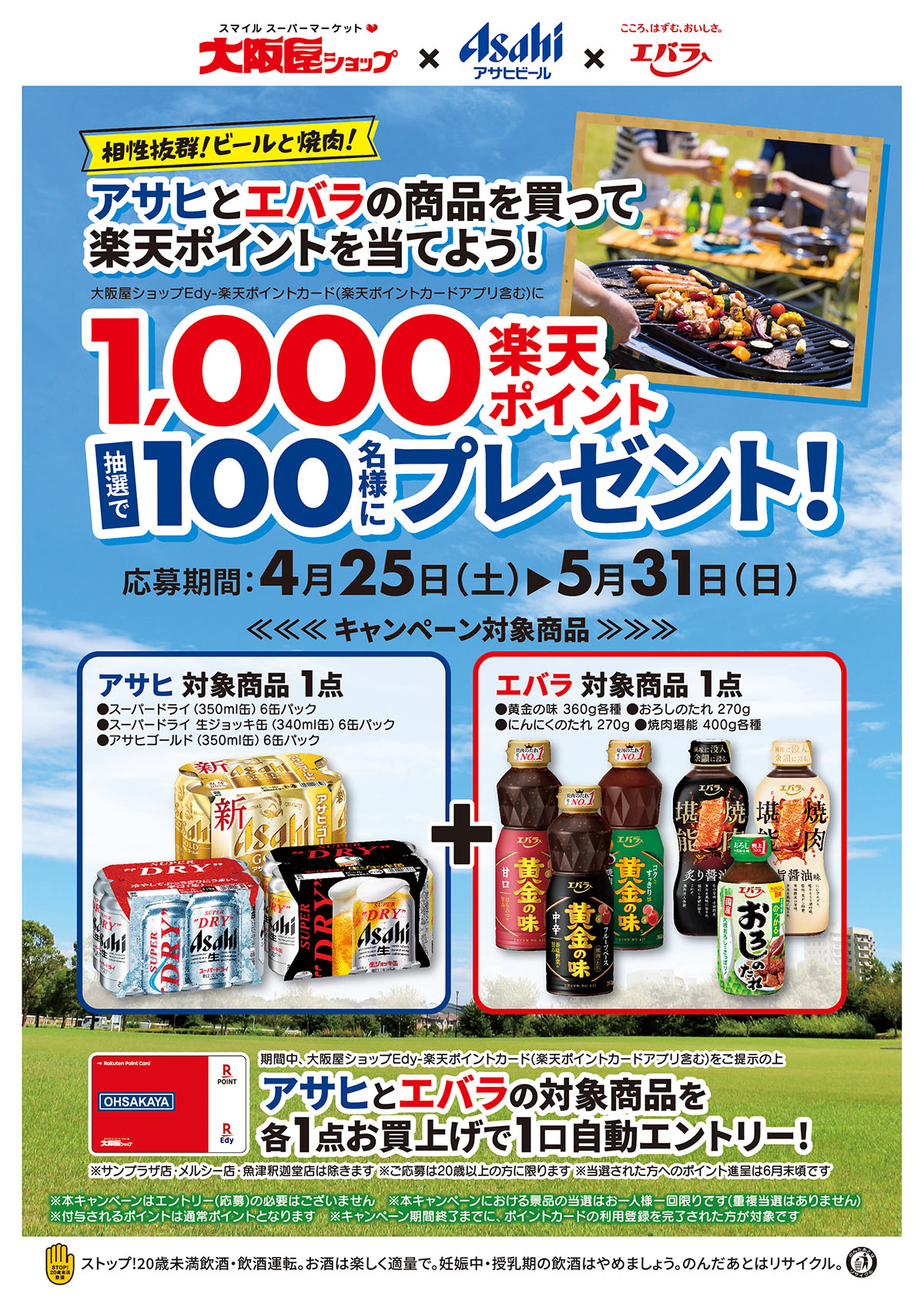 【大阪屋ショップ×アサヒ×エバラ】楽天ポイントプレゼントキャンペーン