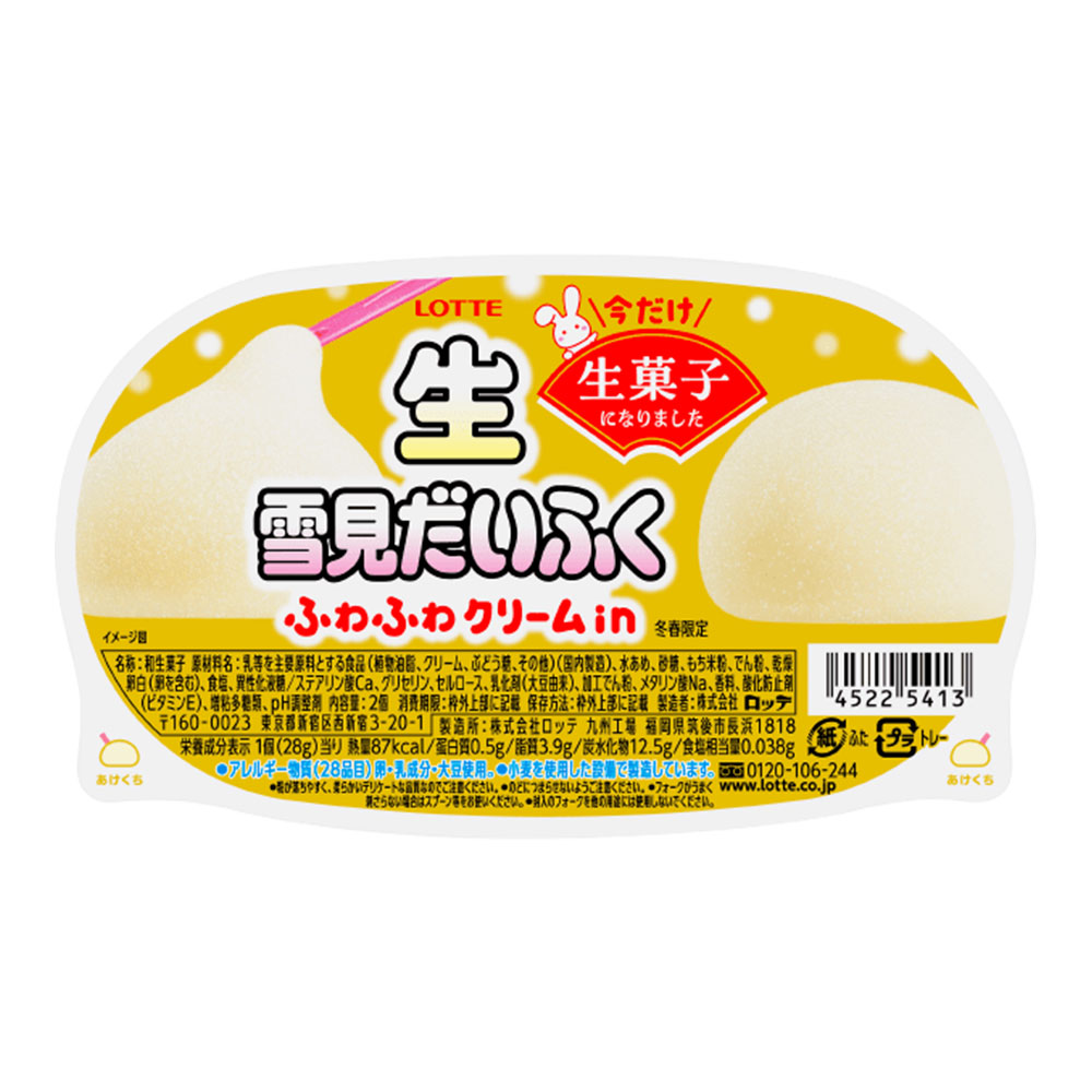 クリームのやわらかさとやさしい味わいが楽しめる生菓子ならではの美味しさです! 伸びのあるもちもちの薄いおもちで、ふわふわ食感のクリームをたっぷり包み込みました -